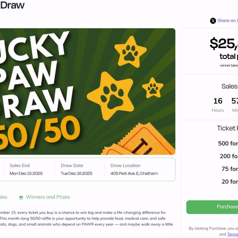 Our Lucky Paw Draw 50/50 ends at MIDNIGHT!! Winner takes home over $12’000!!!