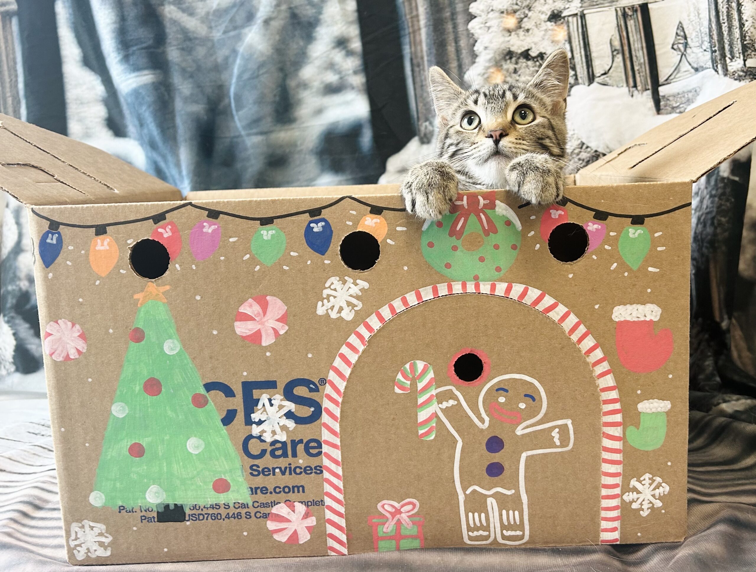 – Decorate your own Christmas-themed cat house