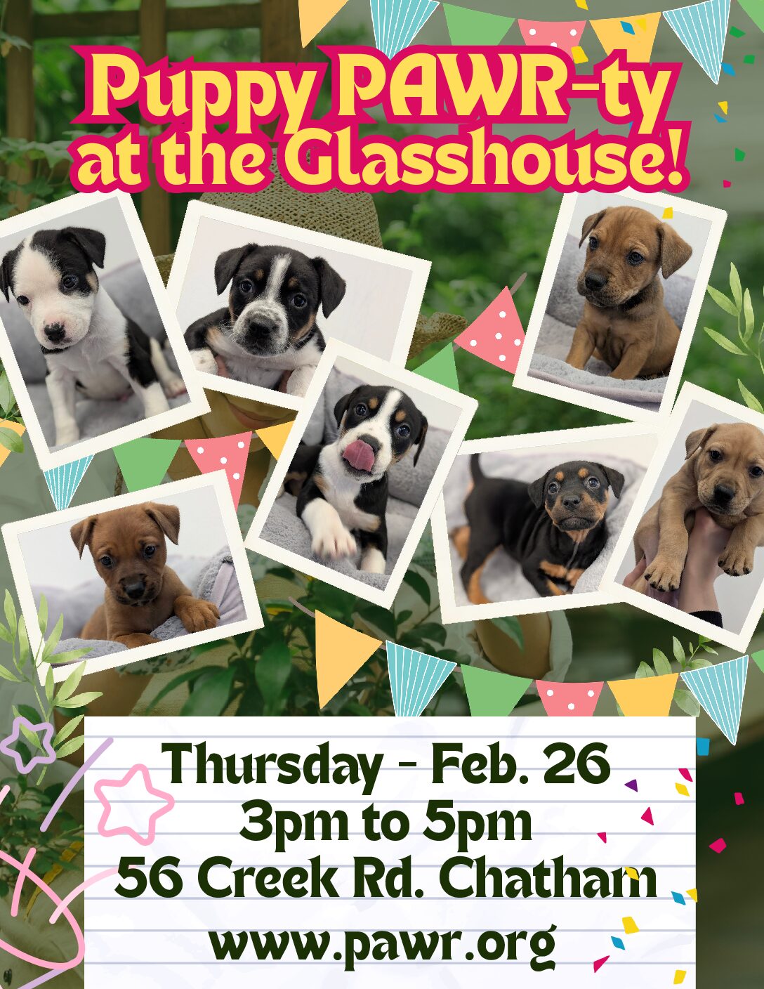 Get ready for tail wags and puppy kisses! Join us this Thursday, February 26 from 3:00 PM to 5:00 PM at the beautiful Glasshouse Nursery in Chatham for our upcoming... |