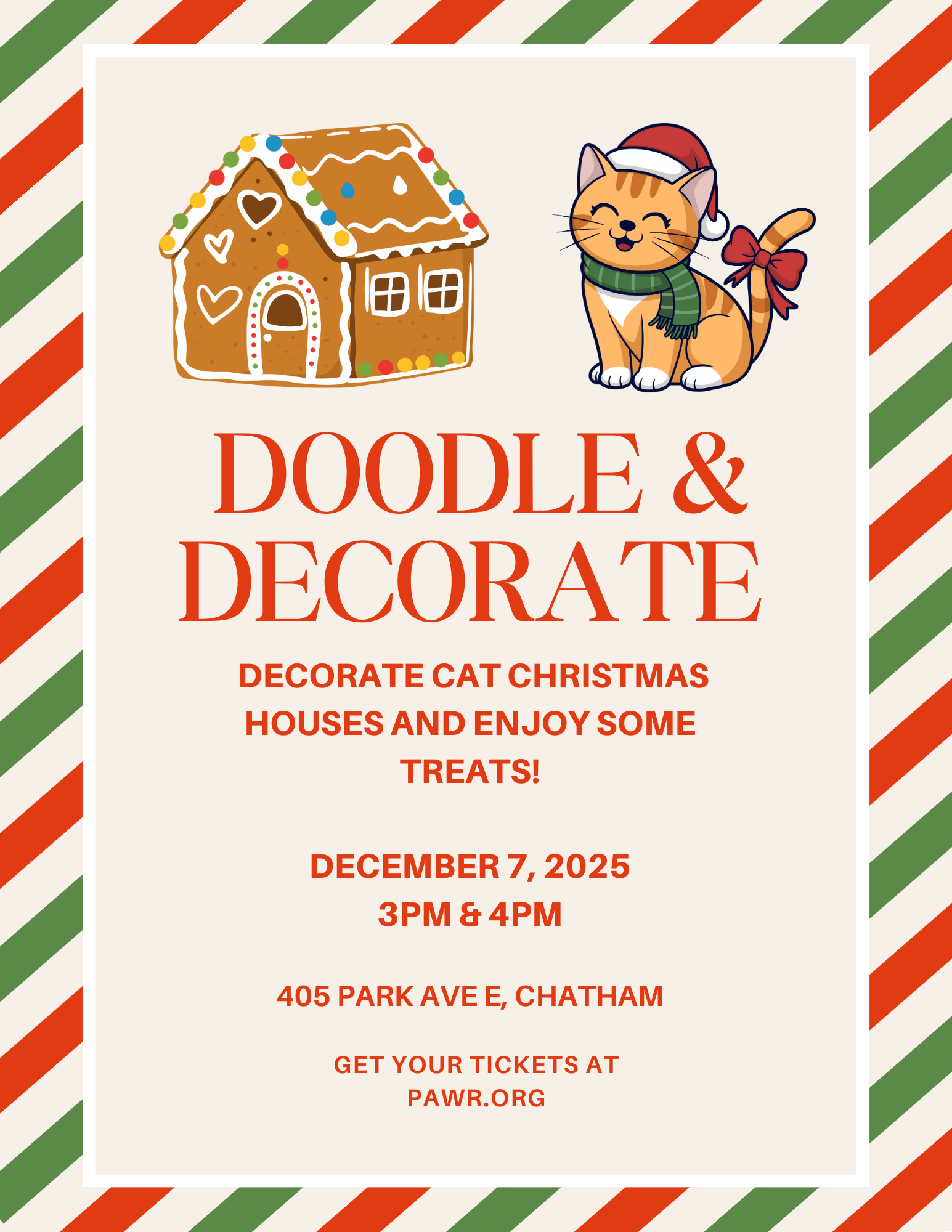 Join us for an afternoon of decorating Christmas themed cat houses, delicious treats and cute cats to snuggle with. Take your cat castle home as an early Christmas gift for your feline friend!