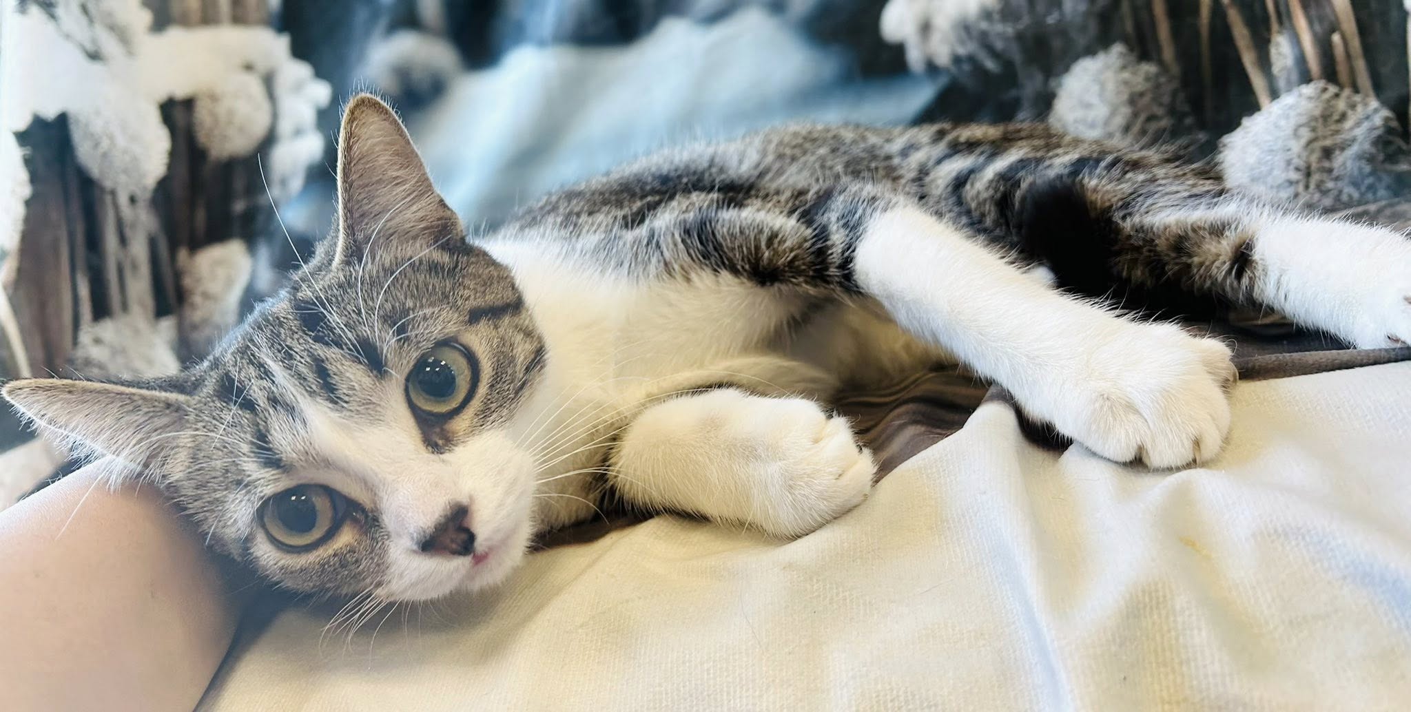I enjoy playtime with toys and then settling in nearby to relax, keeping you company while you go about your day. I’ve got a warm, affectionate personality and a calm presence that makes me easy to love. If you’re looking for a cat who’s equal parts fun and comforting, I might just be your perfect match.