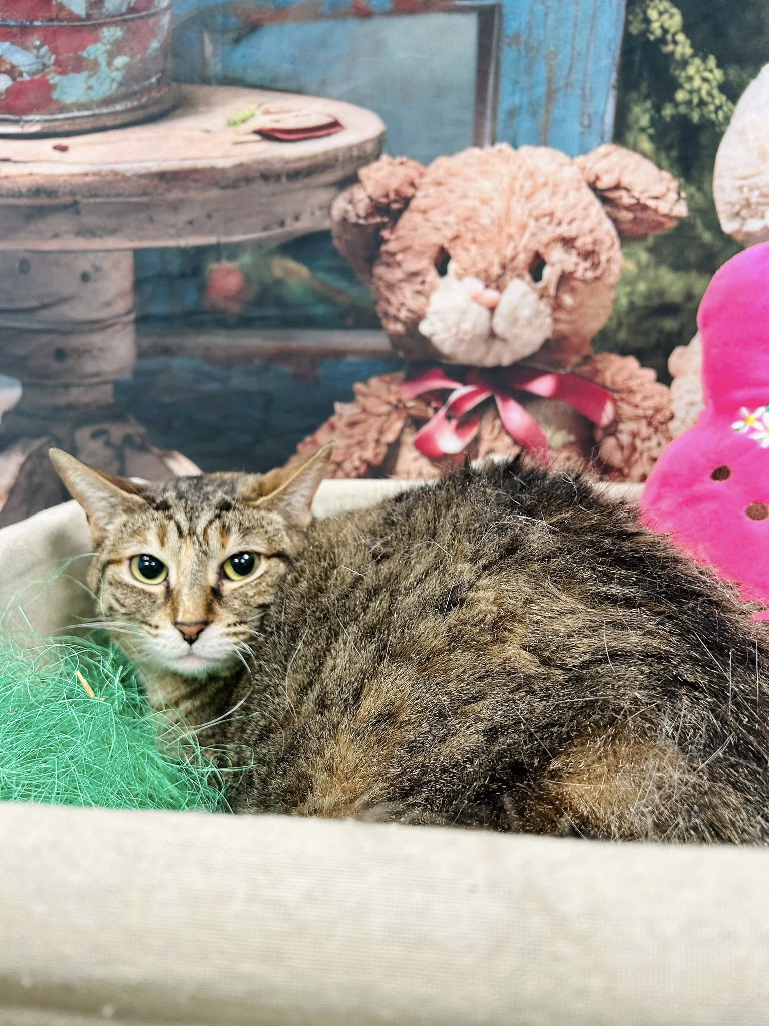 This sweet girl is all about the slow reveal. She might start off as a quiet observer, peeking at you like “are you… safe?” but before you know it, she’s leaning into soft pets, melting like cream cheese frosting on a warm cake. Once she trusts you? Oh, you’re hers. Expect tiny head bumps, soft purrs, and the occasional “I will sit near you but pretend it’s not on purpose” moment.
