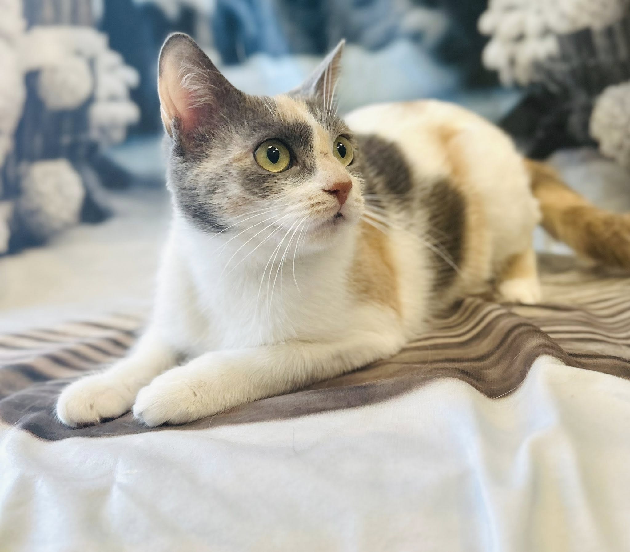 This quirky little lady is as delightful as her name. Chicken Wing is playful, curious, and always ready to bring a smile to your face. She’ll wiggle, pounce, stretch, and strut her way into your day with her silly antics and sweet charm.
