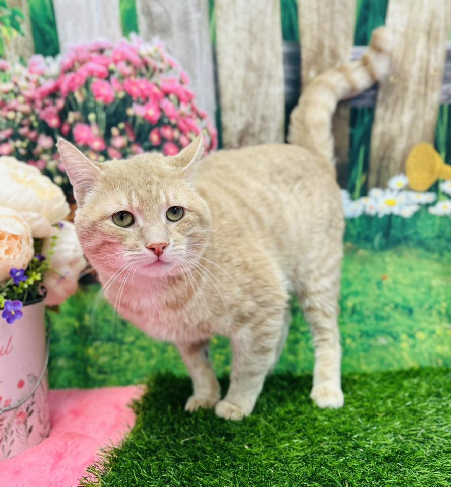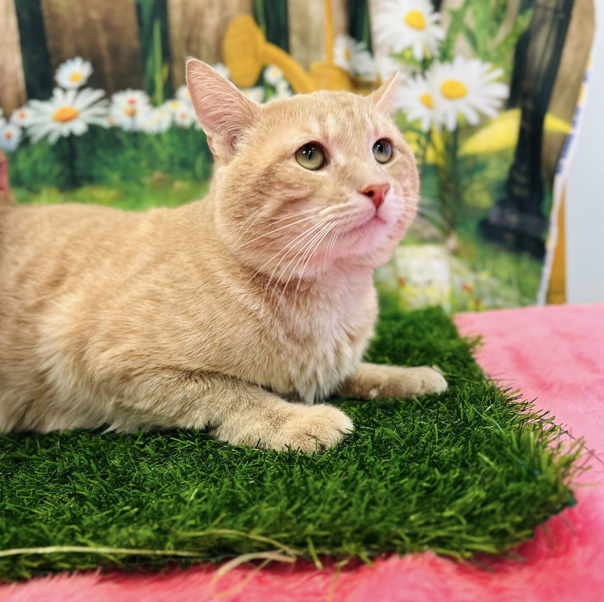 Chunk didn’t have the best start… he was sadly left behind and came to us feeling pretty crummy. But don’t worry, this big orange boy said “absolutely not” to staying down and made the most impressive comeback. He’s now healthy, thriving, and ready to bonk his way straight into your heart. And when we say head bumps… we mean HEAD. BUMPS. This guy doesn’t just gently nudge – he commits. Legs? Bonk. Hands? Bonk. Other cats? Bonk (maybe… jury’s still out). The air? Also bonk, just in case it needs love too. If there’s something within a 3-foot radius, Chunk is probably bumping it.