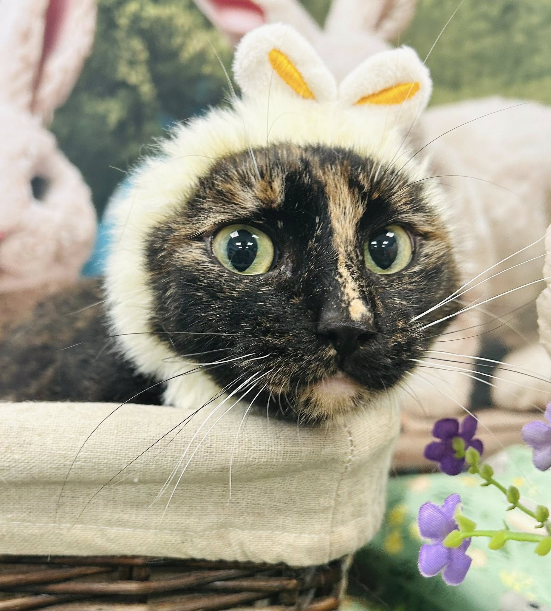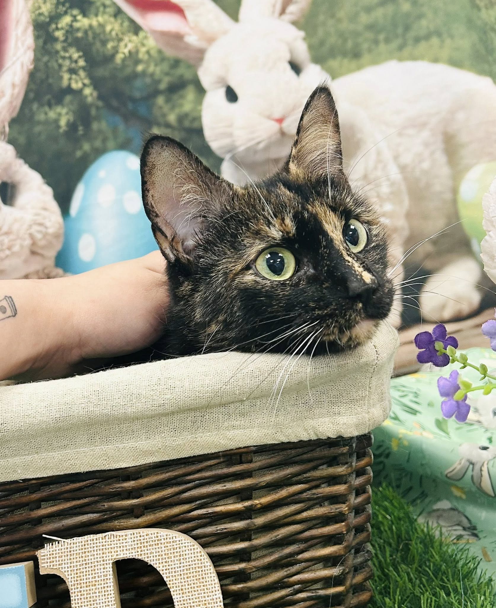 This sweet tortie is currently in her “foil wrapper” phase, meaning she tends to keep herself tucked away and out of sight while she figures things out. New people? Suspicious. Sudden noises? Absolutely not. Existing? Still processing. But give Mini Egg a little time, a gentle approach, and a patient hand, and she starts to crack (in the best way). Underneath that shy shell is a soft, sweet center who just wants to feel safe and loved. And once you earn her trust? You’ve officially unlocked the rare, limited edition cuddle version of Mini Egg.