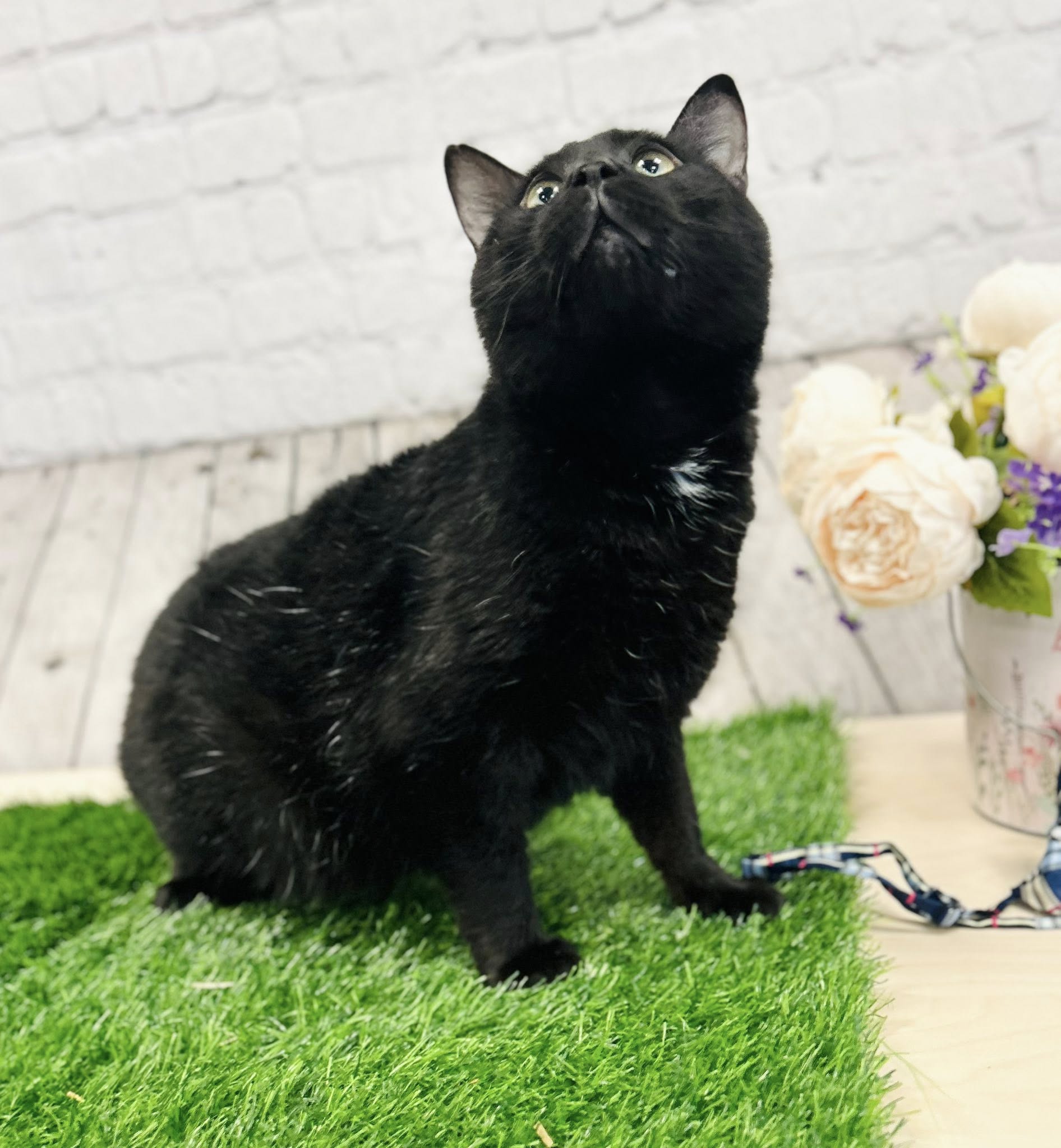 But don’t let his adventurous spirit fool you — Scout has a soft side a mile wide. After a long day of patrolling his kingdom, he’s more than happy to curl up beside you, purring like a tiny motor and soaking up all the love he can get. He’s the perfect balance of playful and affectionate, with just enough mischief to keep life interesting.